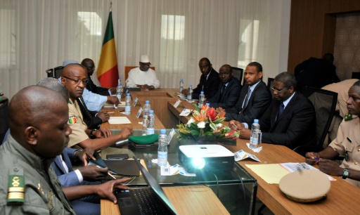 Conseil de sécurité autour du président malien Ibrahim Boubacar Keita, le 19 juillet 2016 à Bamako, après l’attaque du camp de Nampala | AFP | HABIBOU KOUYATE