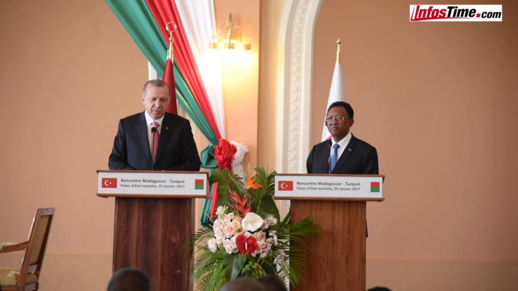 Le président turc Recep Tayyip Erdogan a terminé ce jeudi 26 Janvier 2017 sa visite officielle de 24h à Madagascar. Il était à Antananarivo, la capitale malgache avec 150 chefs d’entreprise. Objectif, renforcer les relations bilatérales entre les deux pays notamment dans le domaine économique. De nouveaux partenariats ont été cependant noués entre un Madagascar de plus en plus actif sur la scène internationale la Turquie, 18ème puissance mondiale.